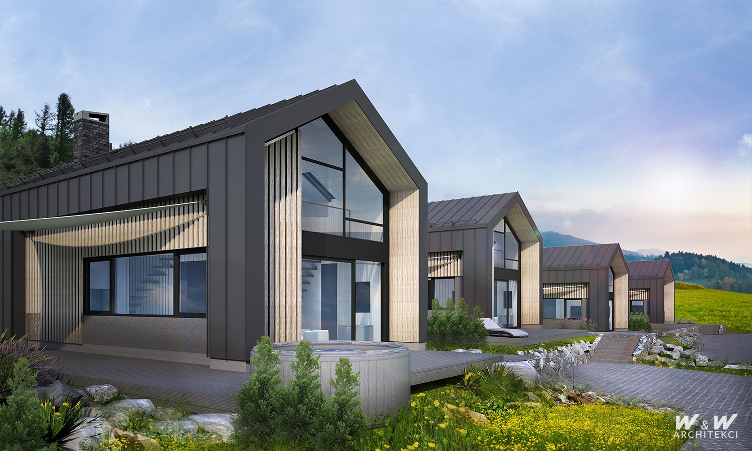 Koncepcja budowy zespołu czterech budynków mieszkalnych - wypoczynkowych.
