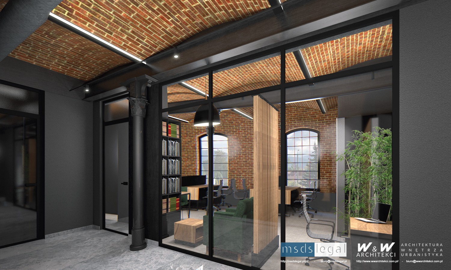 Projekt nowej siedziby kancelarii prawniczej zlokalizowany w historycznym, przemysłowym budynku dawnej Fabryki Rumu i Likierów Grossa.