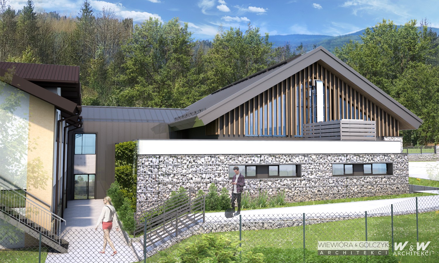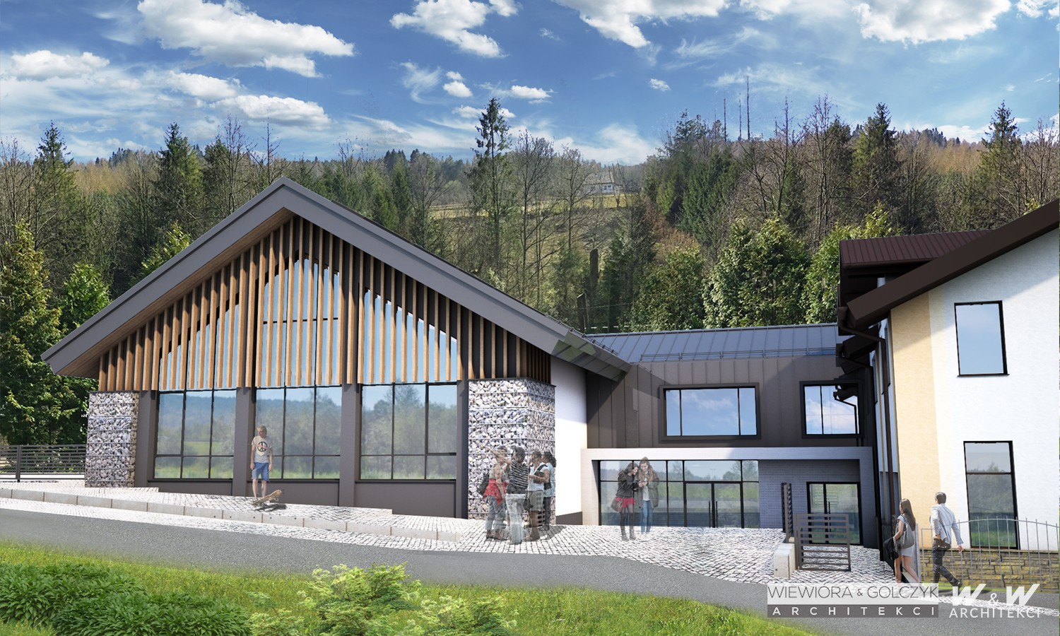 Koncepcja budowy sali gimnastycznej przy Szkole Podstawowej Nr 2 w Cięcinie.