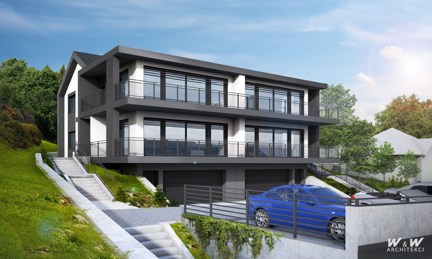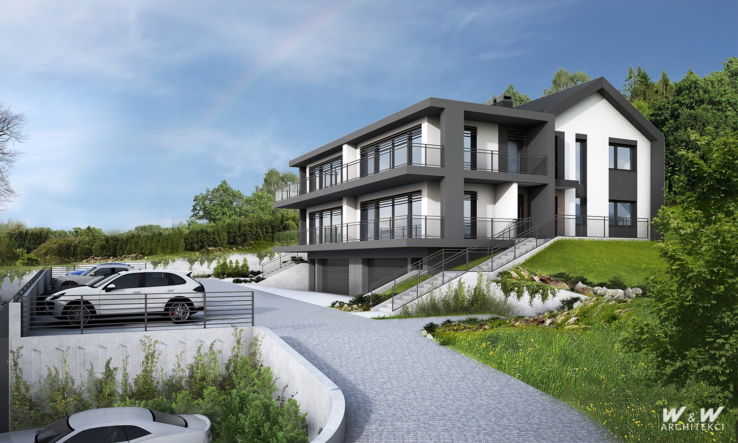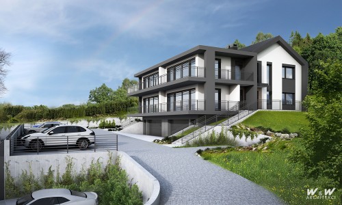 Projektowana jednorodzinna zabudowa bliźniacza składa się z dwóch, trzykondygnacyjnych segmentów. Na kondygnacjach nadziemnych zaplanowano lokale mieszkalne, posiadające niezależne wejścia. Kondygnację podziemną zajmuje czterostanowiskowy garaż.