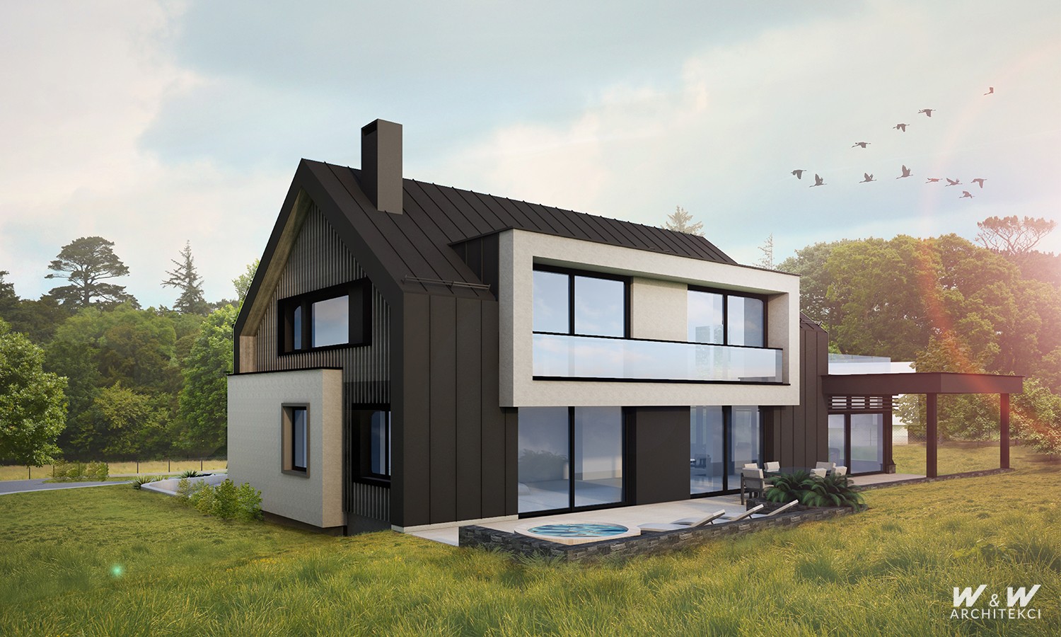 Projekt koncepcyjny trzech budynków jednorodzinnych - dwóch w zabudowie bliźniaczej oraz jednego indywidualnego.
