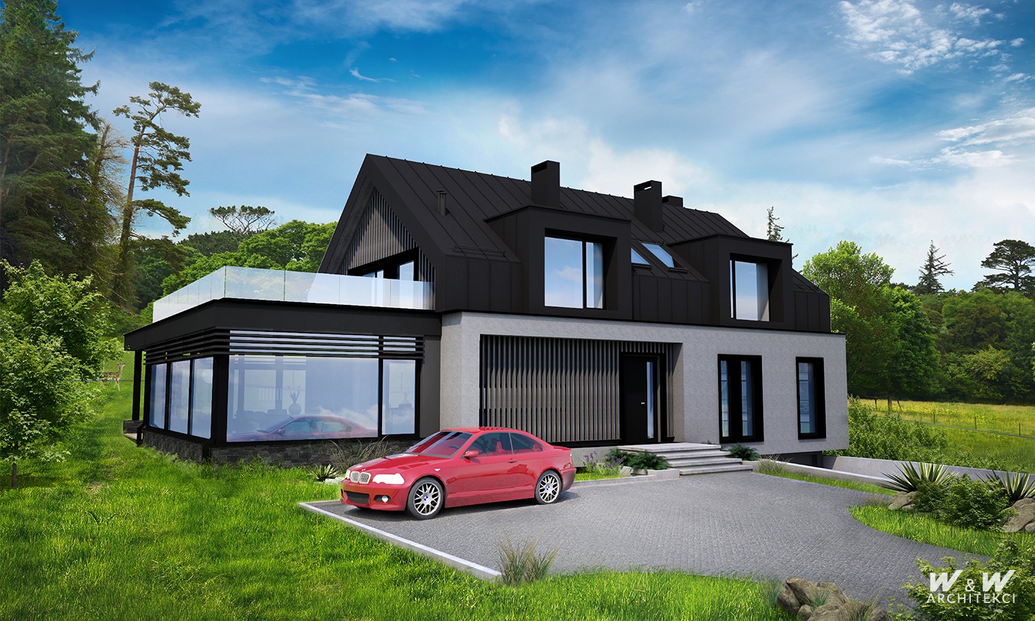 Budynek indywidualny o powierzchni użytkowej ok 300m2 posiada obszerną część dzienną na parterze, część sypialną na poddaszu, oraz piwnicę z garażem dwustanowiskowym.
