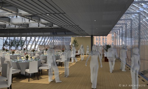 Conference - banquet room with support spaces on the deck of Philadelphia Orchestra at Kimmel Center; 850m2.