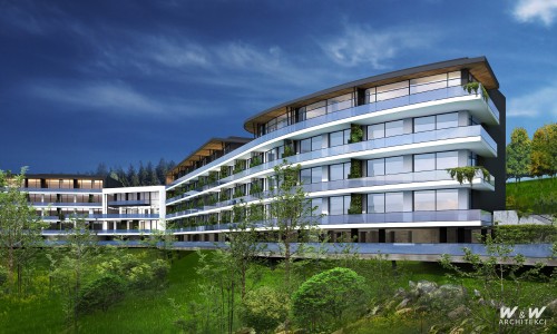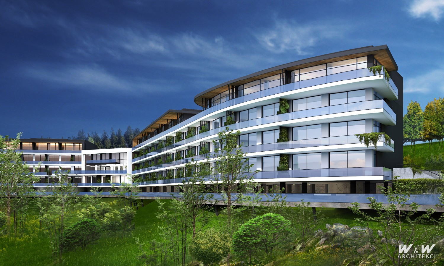 Koncepcyjny projekt malowniczono położonego Aparthotelu.