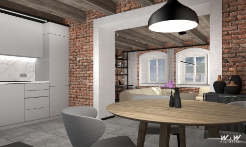 Projekt wnętrz w zabytkowym obiekcie.