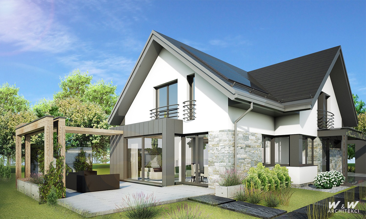 Projekt domu mieszkalnego jednorodzinnego w charakterze nowoczesnej, ekskluzywnej willi.