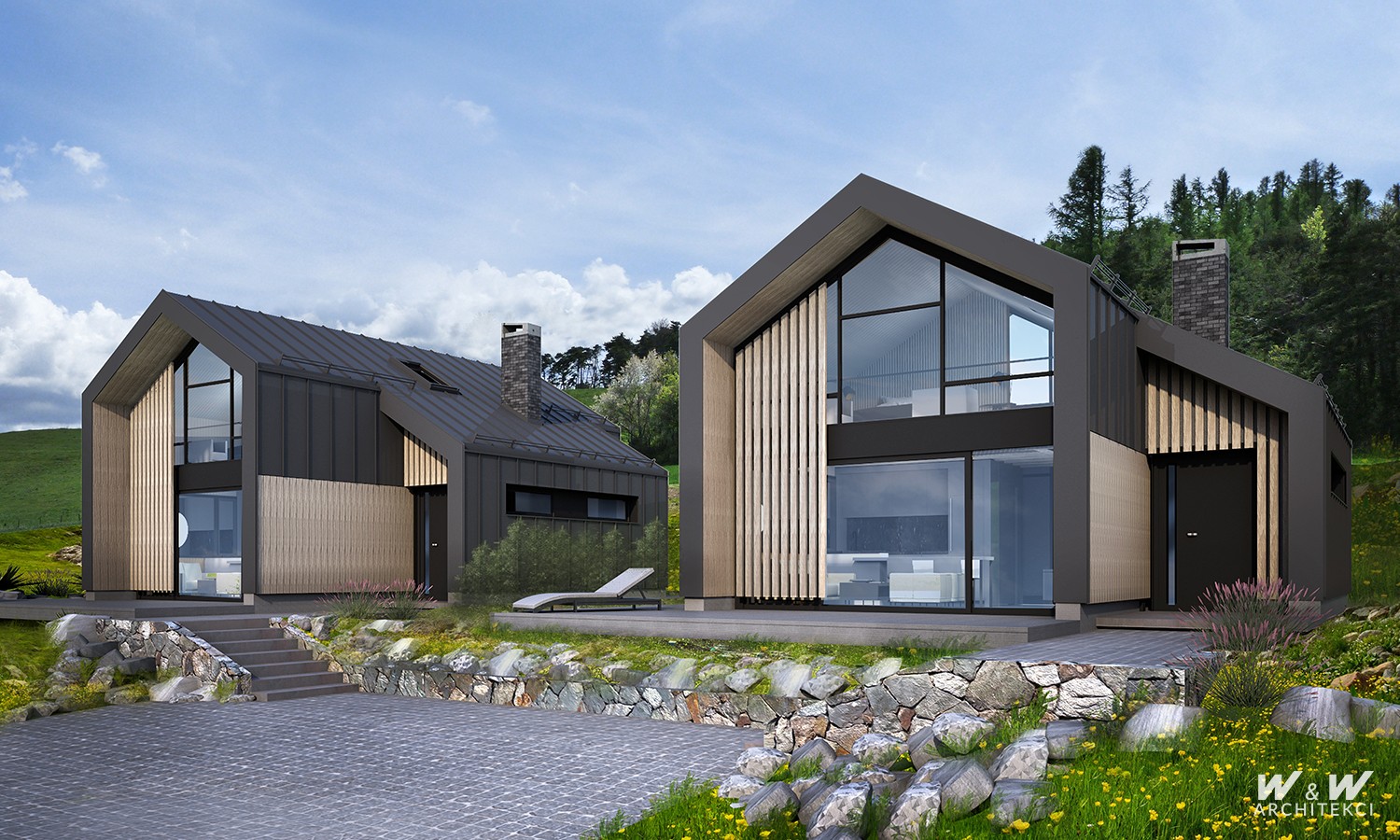 Koncepcja budowy zespołu czterech budynków mieszkalnych - wypoczynkowych.