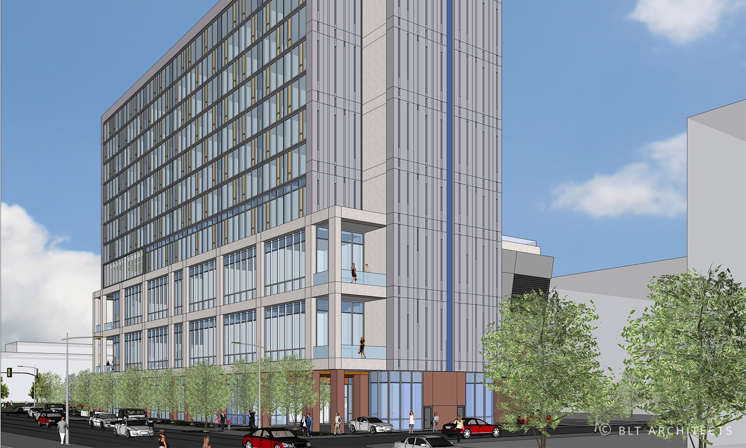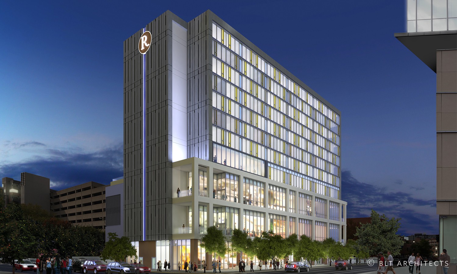 11-kondygnacyjny hotel z basenem, fitness, częścią handlowo-usługową i gastronomiczną.