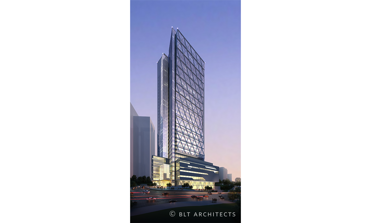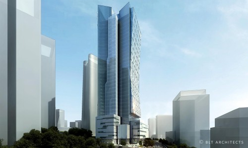 40-kondygnacyjny budynek biurowy z piętrami usługowo - handlowymi i 5-poziomowym garażem podziemnym, Lokalizacja: Chongqing, Chiny.